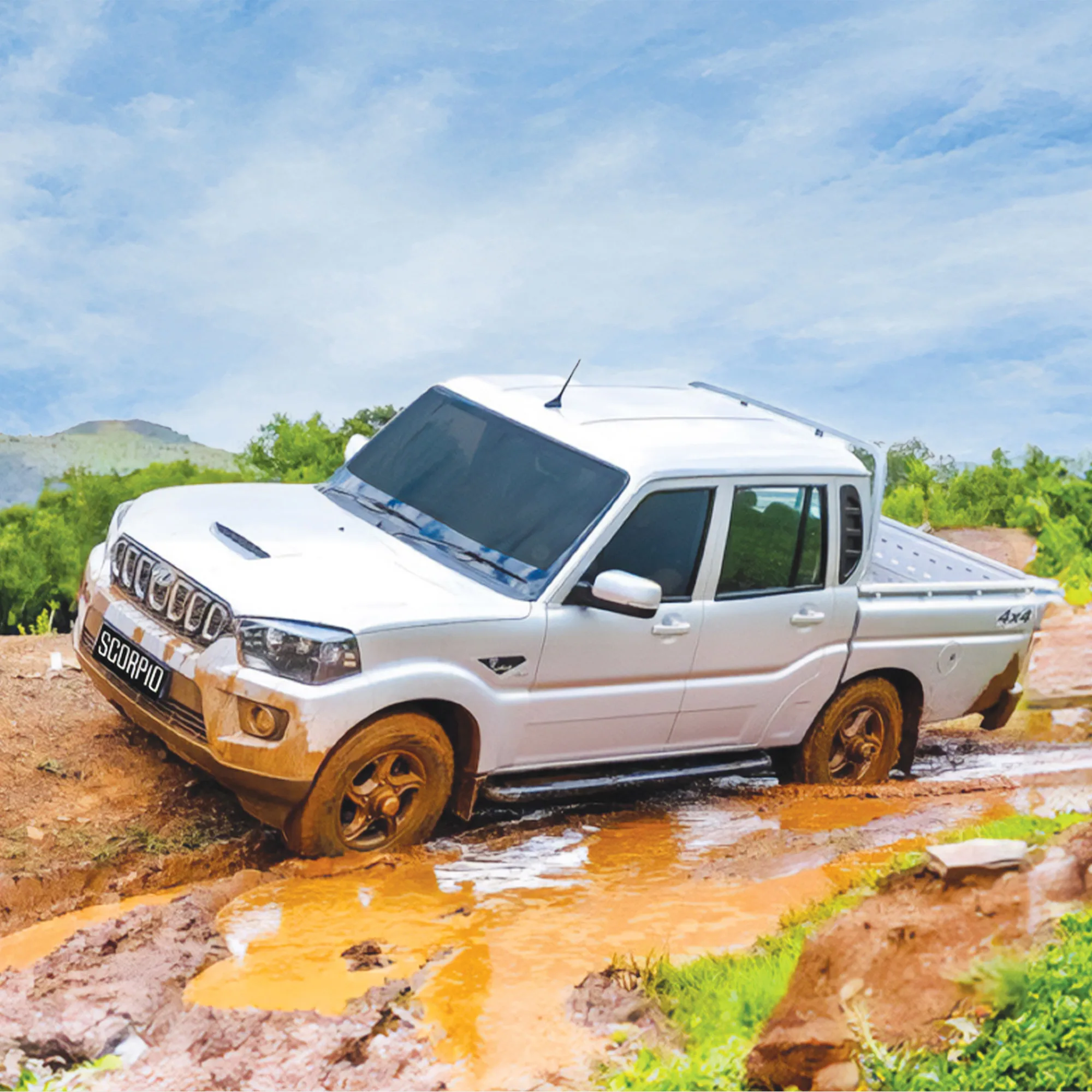 The Scorpio Double Cab S11 is a powerful automatic transmission pick-up built for performance and convenience. Its 6-speed automatic gearbox and 2.2L mHawk turbo diesel engine ensure seamless power delivery with fuel efficiency. Designed for work and adventure, it boasts high payload capacity, a rugged chassis, and 4x4 capability for any terrain. The spacious double cabin, premium interiors, and advanced infotainment system enhance comfort, while ABS, EBD, and dual airbags ensure safety. With bold styling, low maintenance, and smart connectivity, the S11 is the perfect companion for business, off-road challenges, and everyday travel.